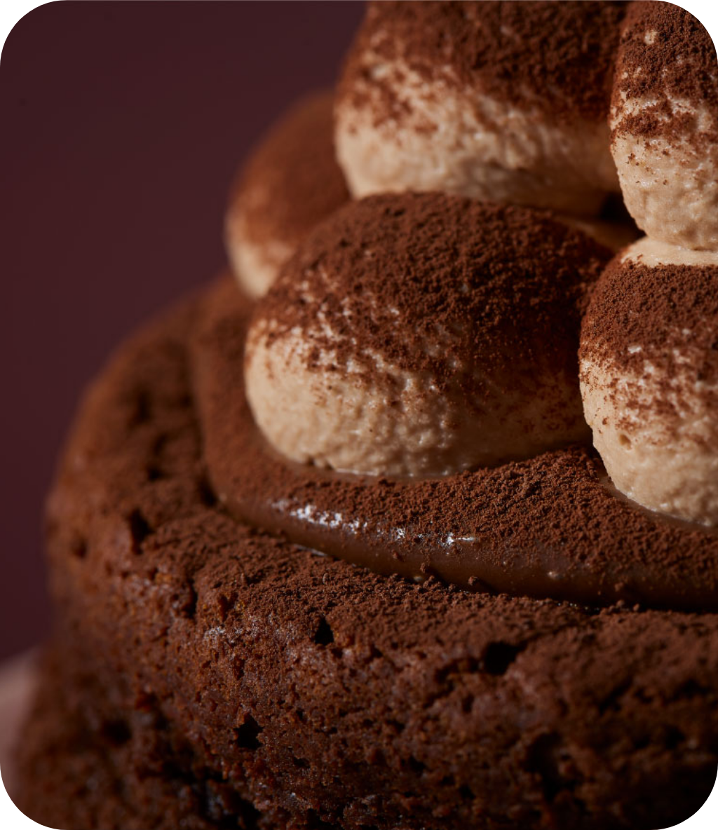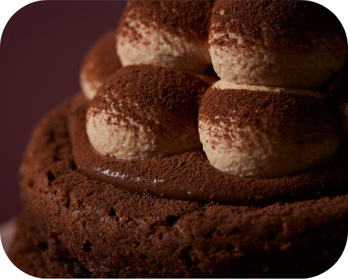 しっとりと焼き上げたガトーショコラとなめらかなガナッシュチョコレートのずっしり濃厚な味わいに、軽い口溶けの生チョコクリームを一緒にお召し上がりいただくことで、チョコレートの贅沢な味わいを最後まで飽きずにペロリとお召し上がりいただけます。